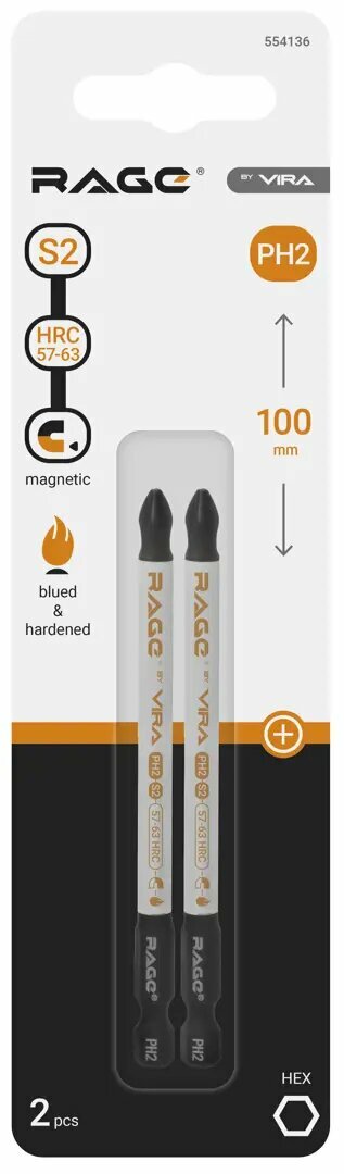 | Дополнительная информация | Бита крестовая магнитная Rage by Vira 554136 PH2x100 мм, 2 шт. |
