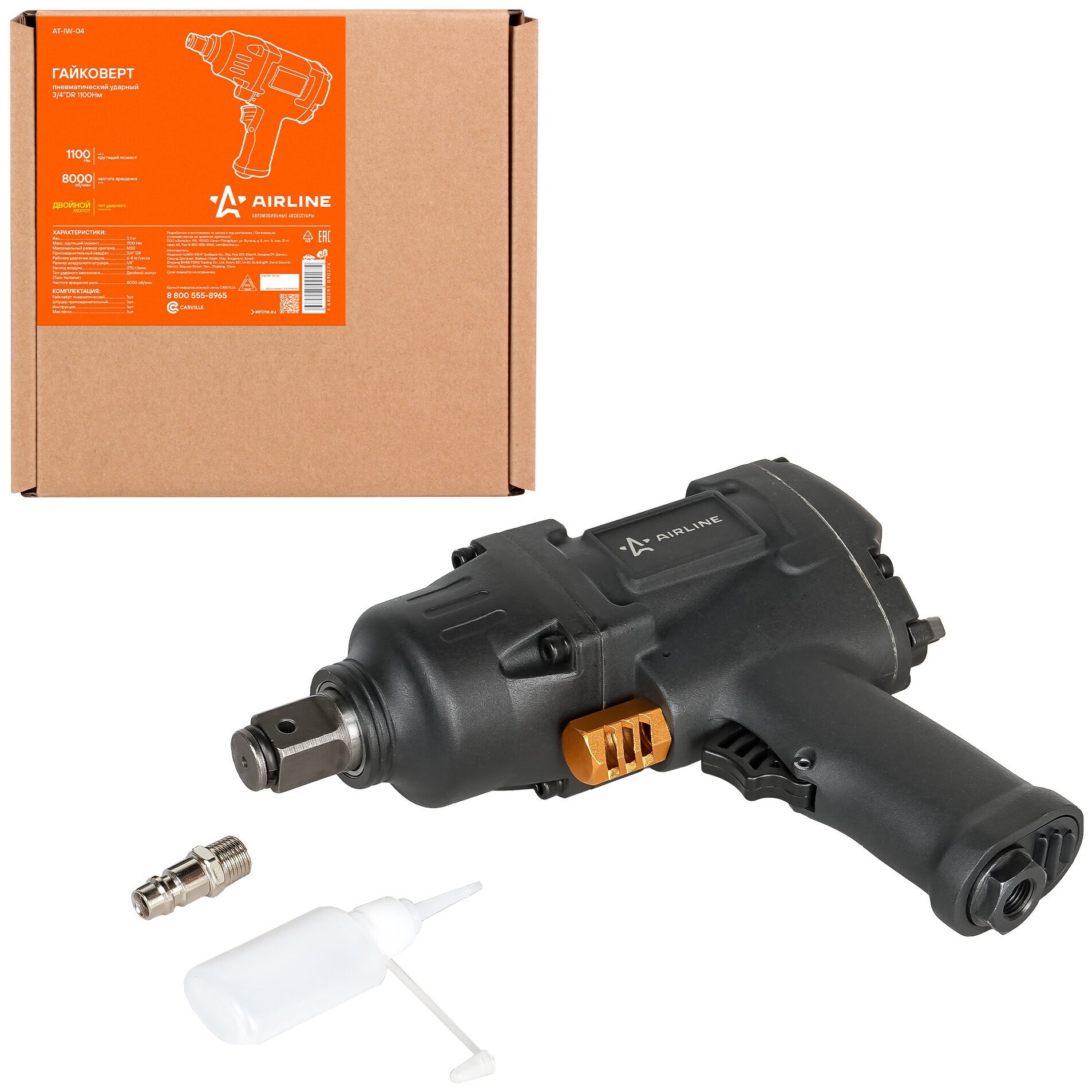 AIRLINE AT-IW-04 Гайковёрт пневматический ударный 3/4 DR 1100Нм (AT-IW-04)
