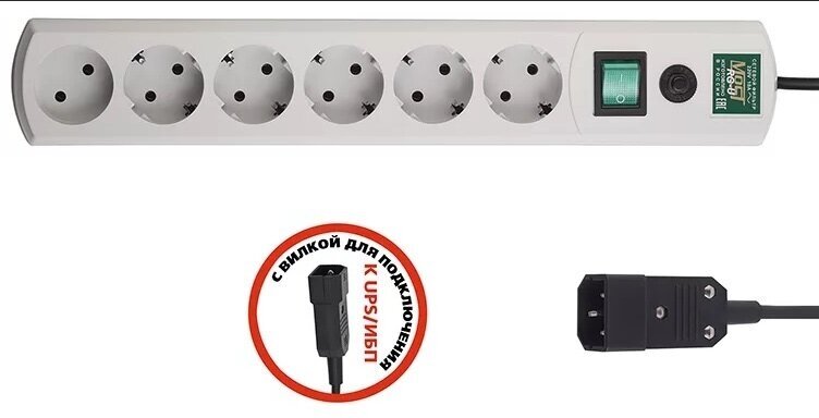 Сетевой фильтр MOST rg-u, вилка для подключения к ИБП(ups), 6 розеток 3м . информация: