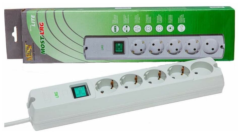 Сетевой фильтр Most LRG 1.6м (6 розеток) белый (пакет ПЭ) информация: