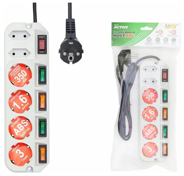 10 цен на Сетевой фильтр Most ARG 1.6м (6 роз.) белый