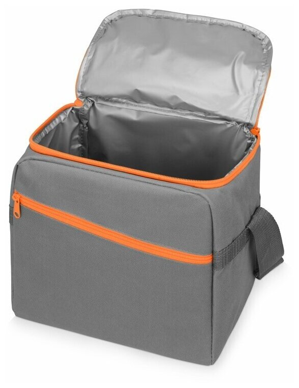 Изотермическая сумка-холодильник "Classic" c контрастной молнией, цвет серый/оранжевый информация:
