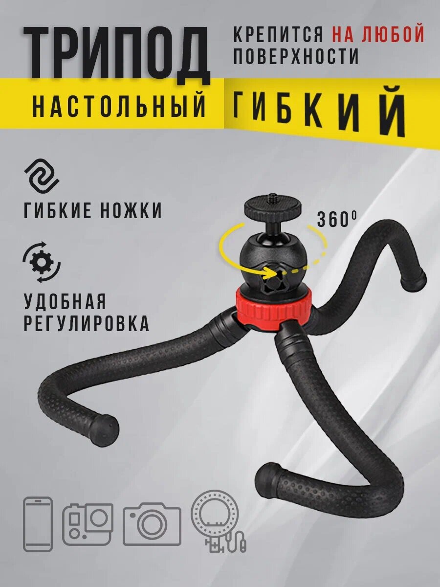 Штатив настольный. Гибкий трипод. Универсальный для смартфона, видеокамеры, селфи-колец.