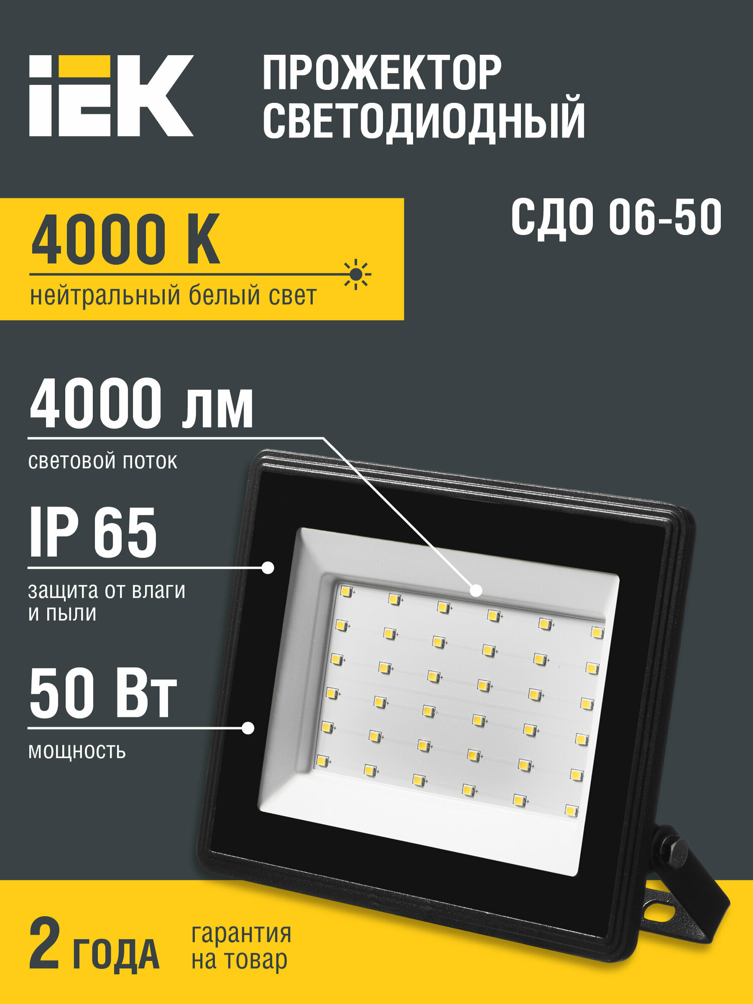 Прожектор светодиодный IEK СДО 06-50 4000 К IP65, черный (LPDO601-50-40-K02)