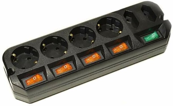 Удлинитель с индивидуальными выключателями MOST A16, 6 розеток, 3500 Вт черный 5 м