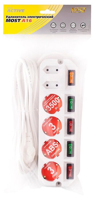 10 цен на Сетевой фильтр Most A16 3м (6 роз.) белый