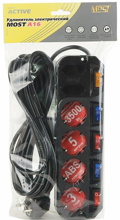 Сетевой удлинитель Most A16, 5м, черный [a16 5] информация: