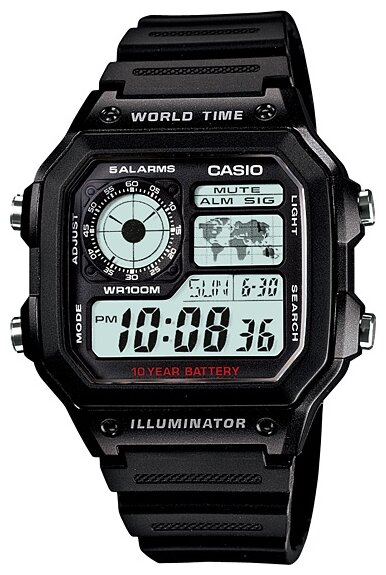 10 цен на Наручные часы CASIO Collection AE-1200WH-1A, черный, зеленый