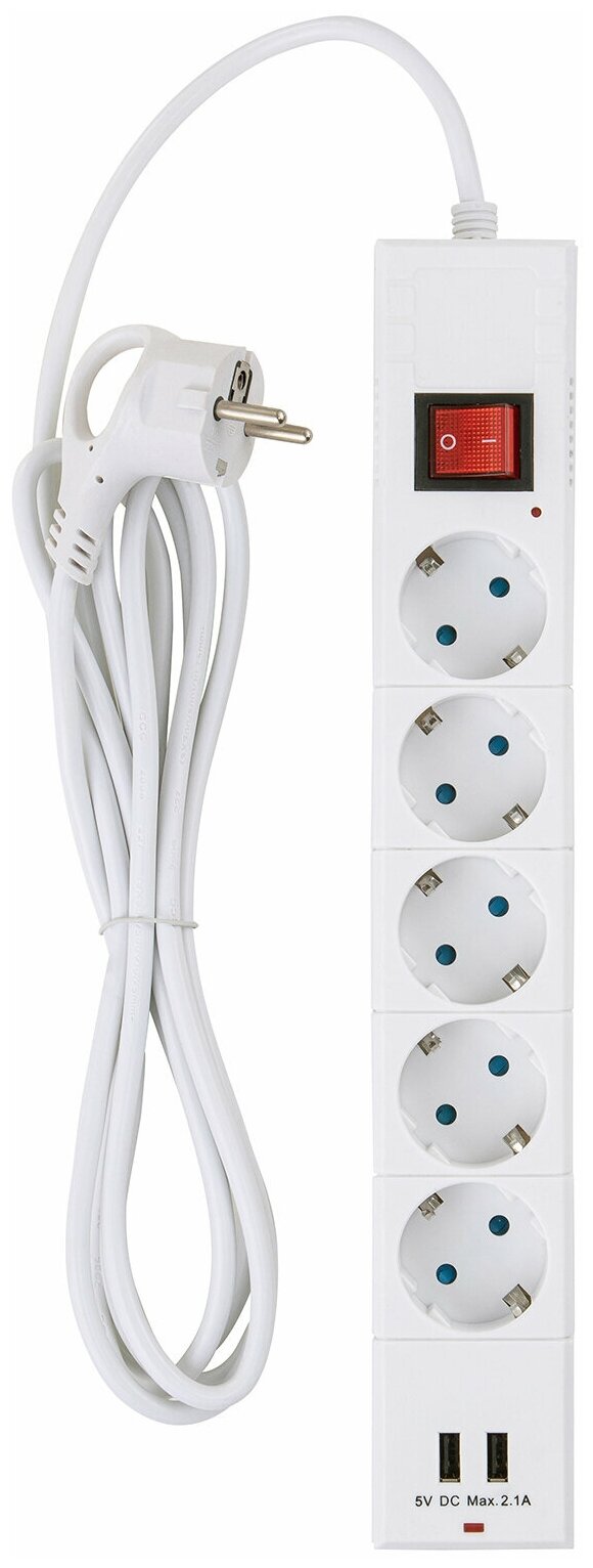 Сетевой фильтр DUWI 32577 2 5 розеток, 5 м, белый