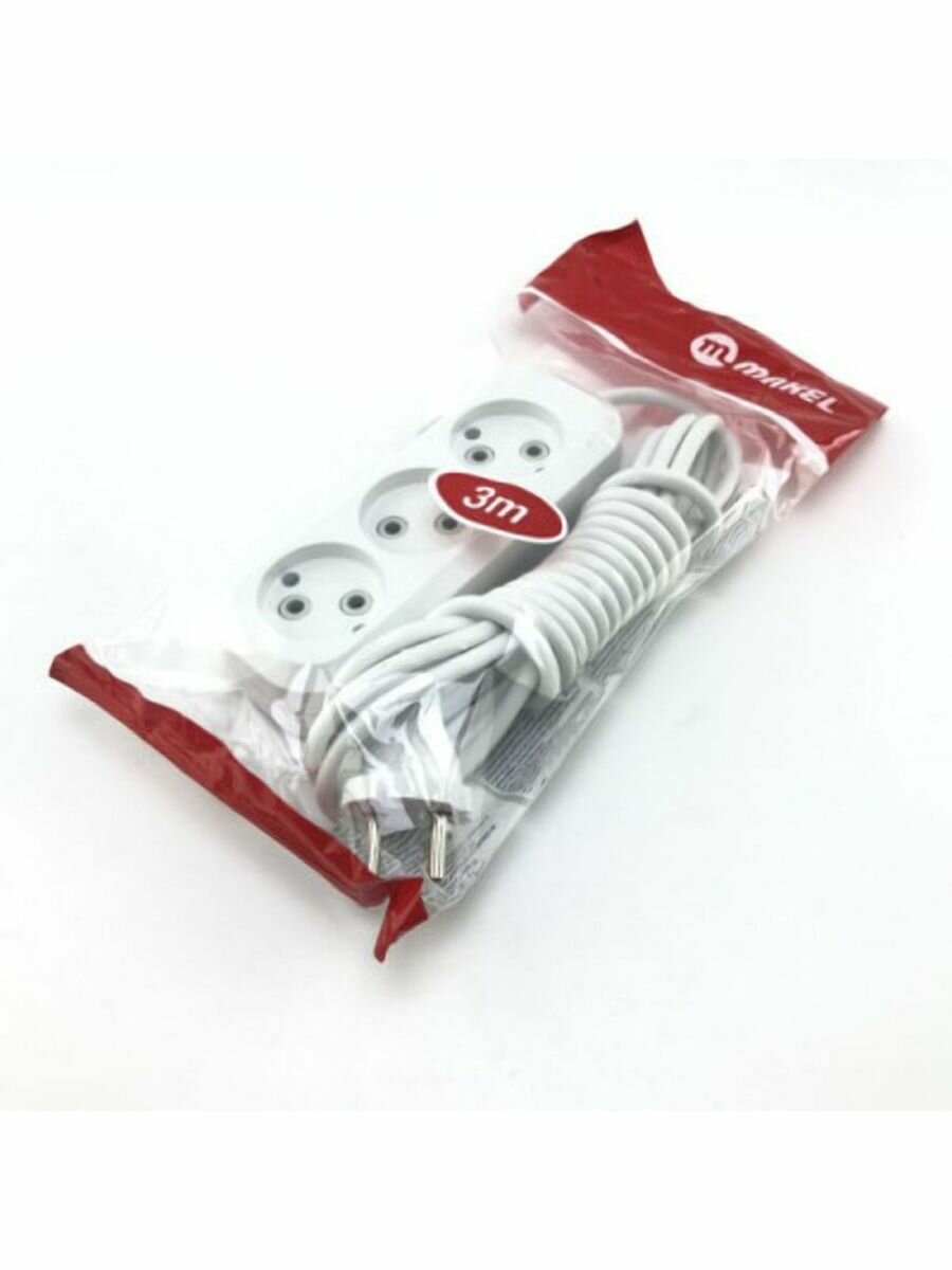 Удлинитель Makel 3 розетки 3 м ПВС 2х0,75 кв.мм 10 А 2,2 кВт белый (MGP123)