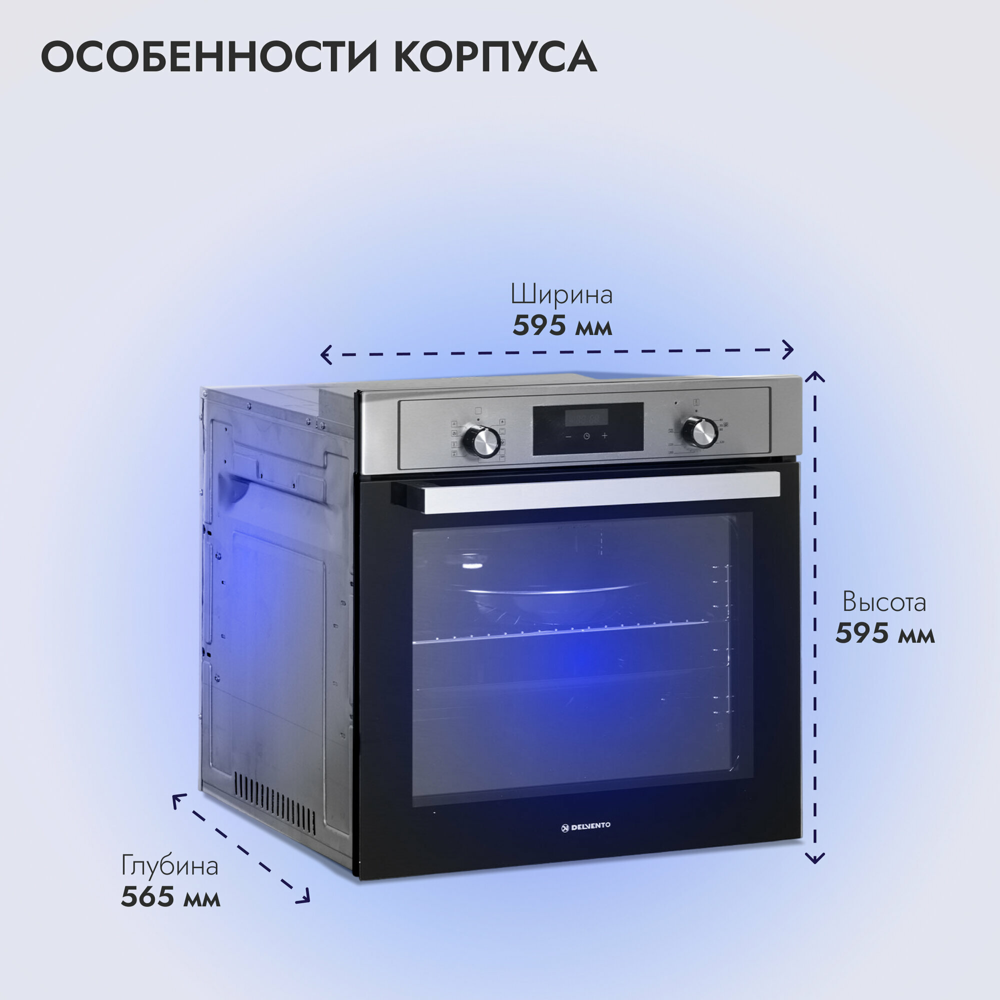 Отзывы на Духовой шкаф электрический встраиваемый 60см серый / 9 режимов (гриль + конвекция) / DELVENTO V6EM59001 / дисплей / таймер 90 мин, часы / двойное стекло LOW-E / хром. решетка и 2 противня: стандартный + круглый / подсветка / гарантия 3 года /