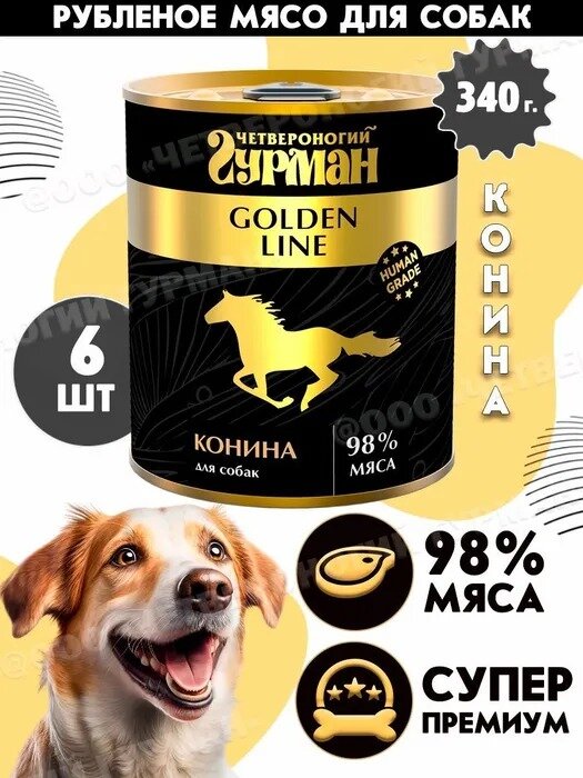 Корм консервированный для собак Четвероногий Гурман "Golden line Конина", 340 г х 6 шт.
