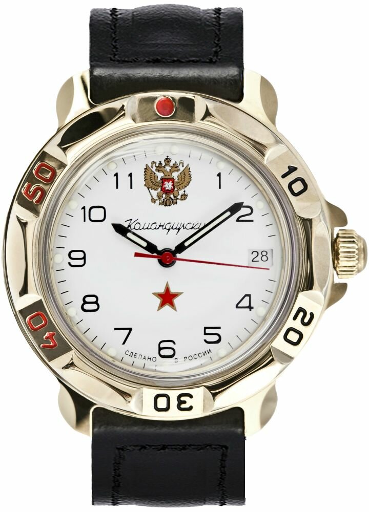 Мужские наручные часы Восток Командирские 53925Б-classic, натуральная кожа, черный