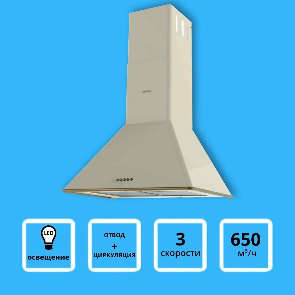 10 цен на Вытяжка кухонная на 60 см, купольная, мощность 146 Вт, производительность 650 м3/ч, LED подсветка, классический дизайн, Korting KHC 6648 RB