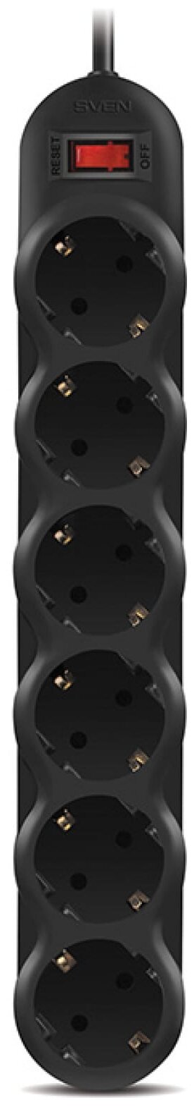 Сетевой фильтр SVEN Optima 6 розеток, 5 метров, черный (220V/10A/термопредохранитель)