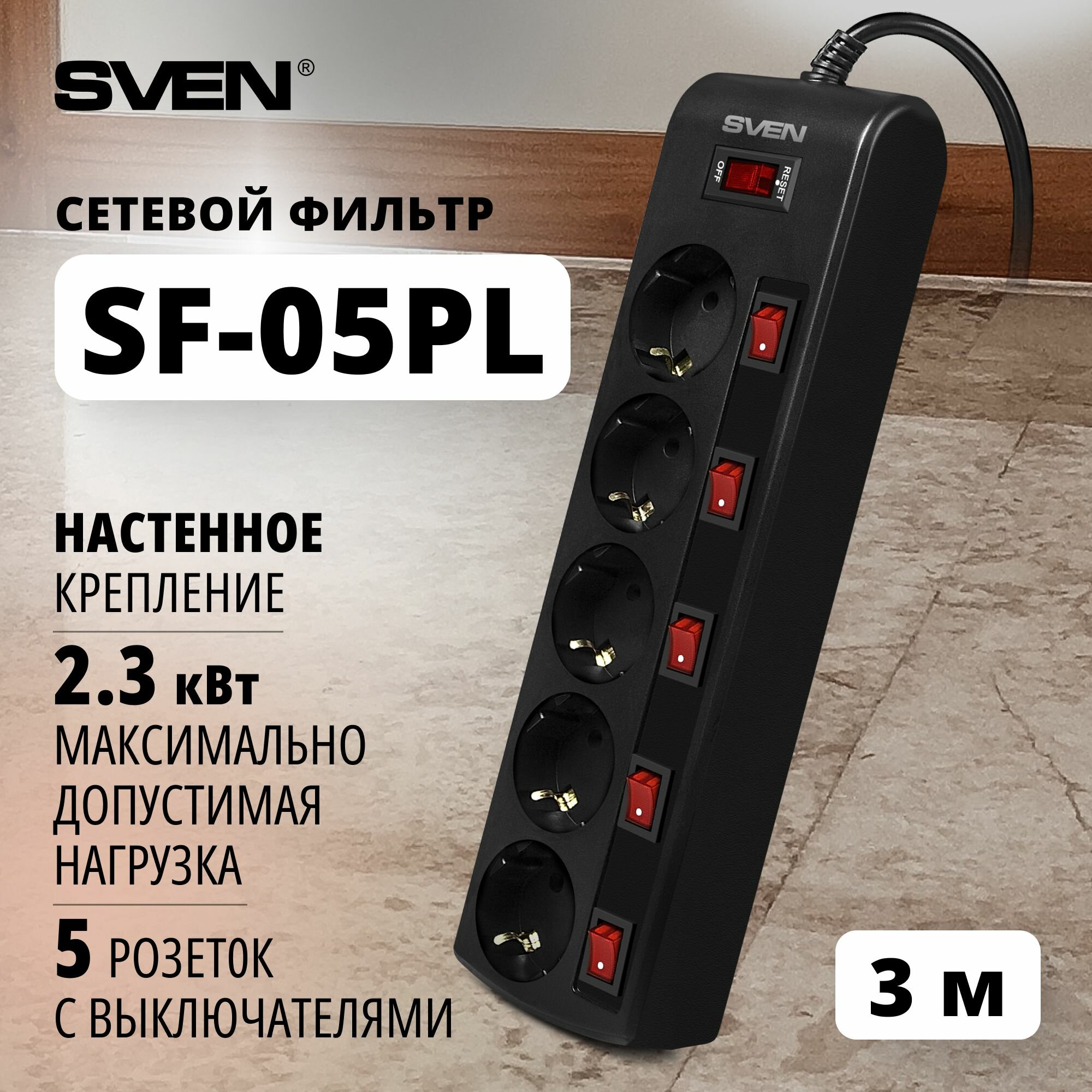 10 цен на Сетевой фильтр Sven SF-05PL SV-015169 3,0 м (5 розеток) черный