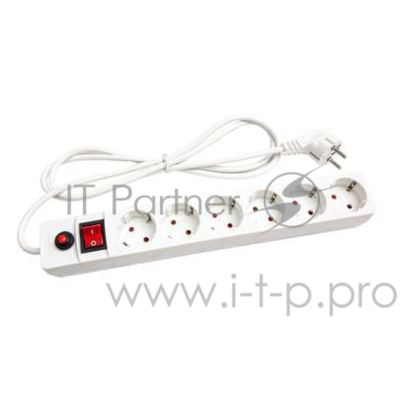 Сетевой фильтр UNIVersal (967U-3001) с заземлением 1,8 м 10 А 230 В 2,2 кВт 6 розеток ПВС 3х0,75 мм2 IP20 с выключателем и защитными шторками белый 903 ₽