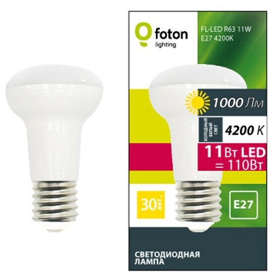 Лампа Светодиодная Foton Lighting 11Вт Рефлектор Гриб R63 1000Лм 220В 4200К Дневной белый свет, уп. 10шт