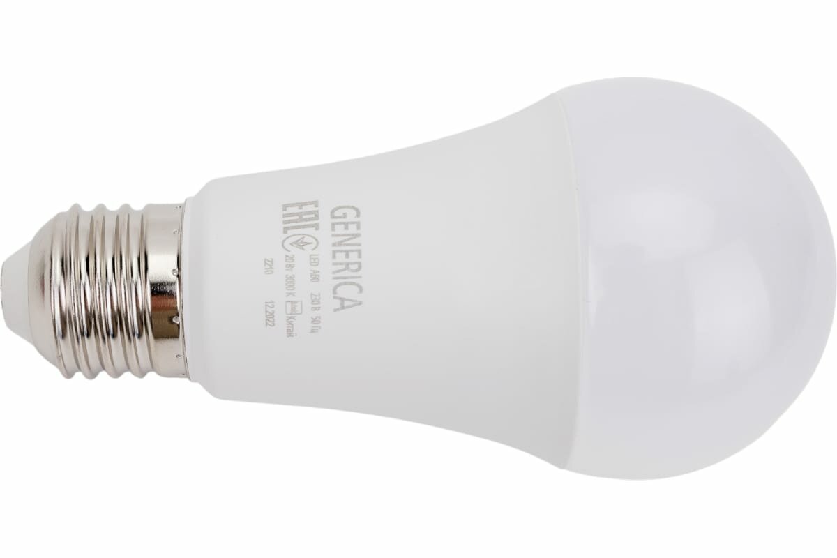GENERICA Лампа светодиодная GENERICA A60, 20 Вт, груша, 3000 К, E27, 230 В, LL-A60-20-230-30-E27-G