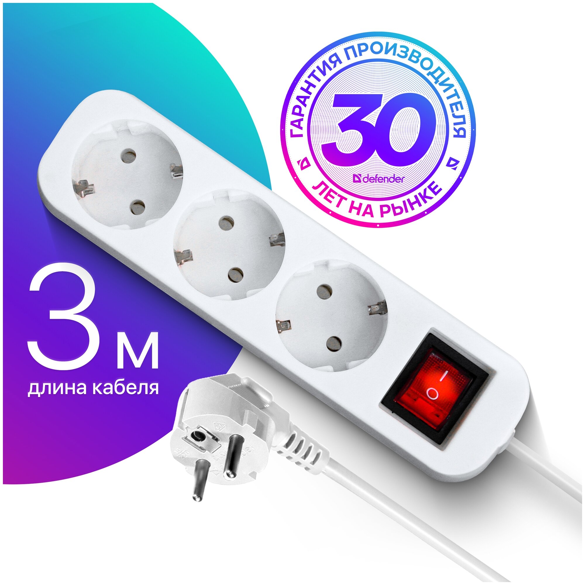 10 цен на Defender Удлинитель S330 3.0 м, 3 розетки 99234 выключатель, с заземлением