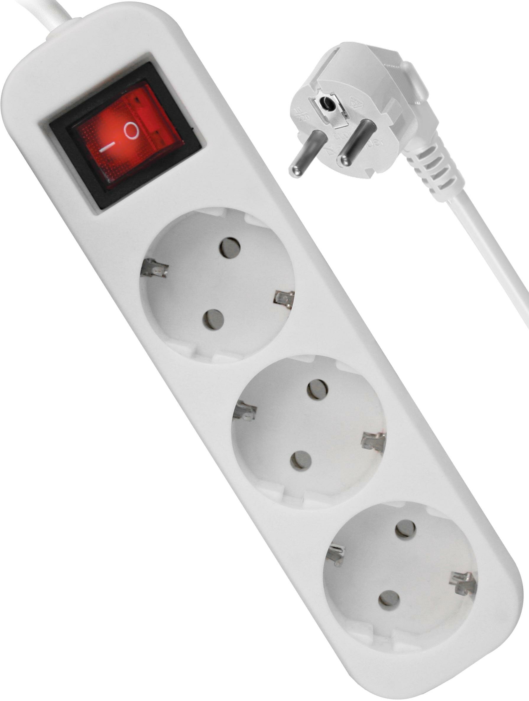 Удлинитель с заземлением Defender S318 Выключатель, 1.8 м, 3 розетки