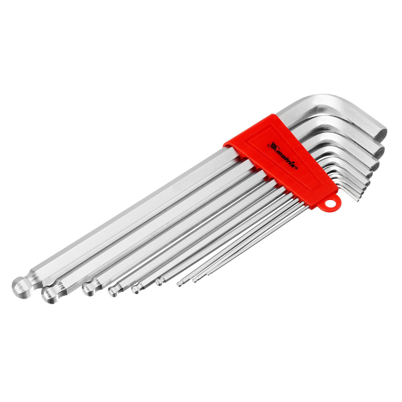 Набор ключей имбусовых HEX, 2–12 мм, CrV, 9 шт., экстра-длинные, c шаром, сатин., MATRIX 16411