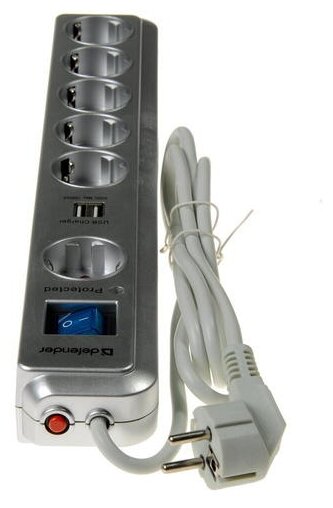 Отзывы на Сетевой фильтр Defender DFS 501 - 6 розеток + USB зарядка 2 порта 1A - 2 метра