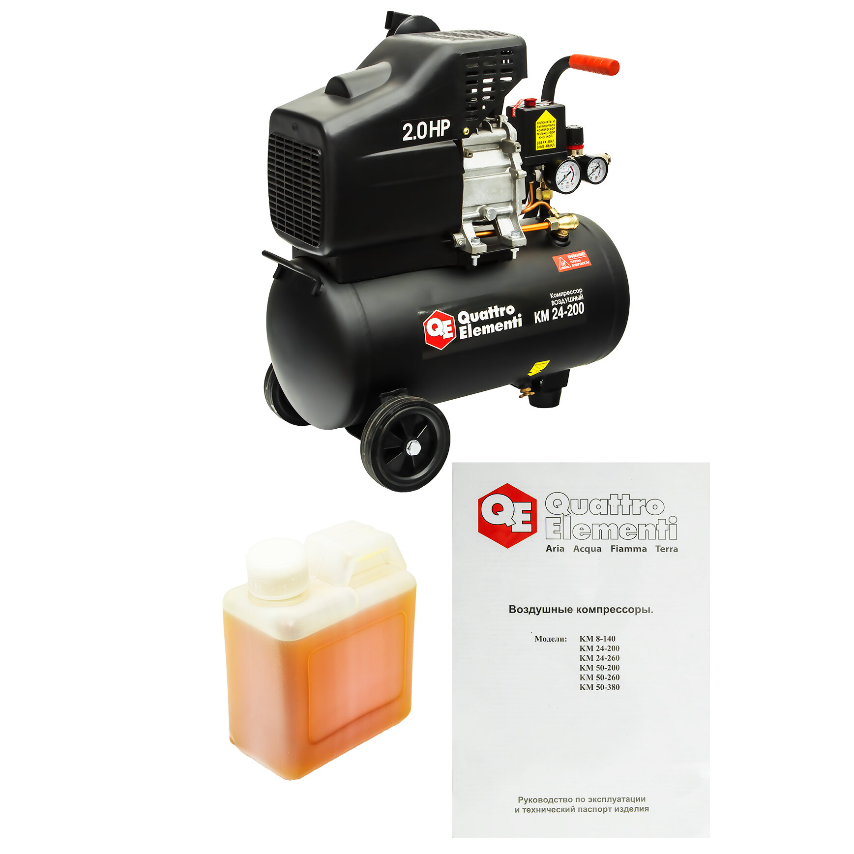 Компрессор поршневой масляный QUATTRO ELEMENTI KM 24-200 ( 200л/мин, 24л, 2л.с, 8 бар, 23кг)