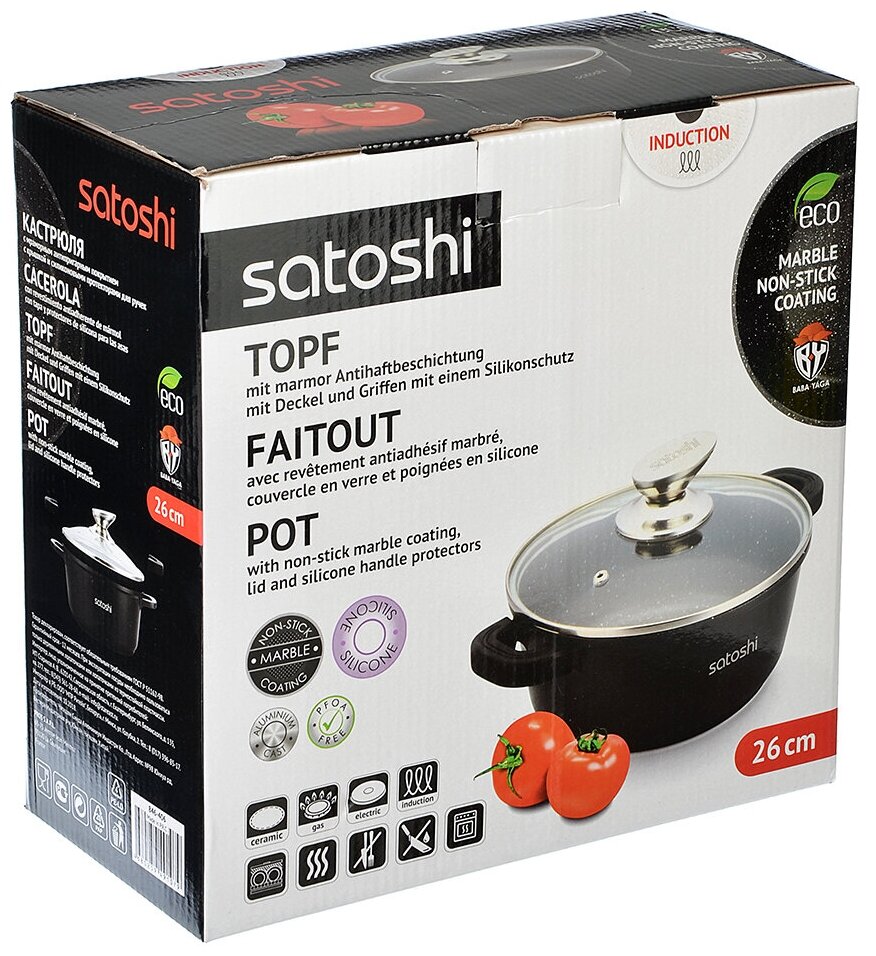 Satoshi Лион Кастрюля с крышкой 5,8л d26*12см, а/приг.покр.Мрамор, силик.протекторы ручек, индукция