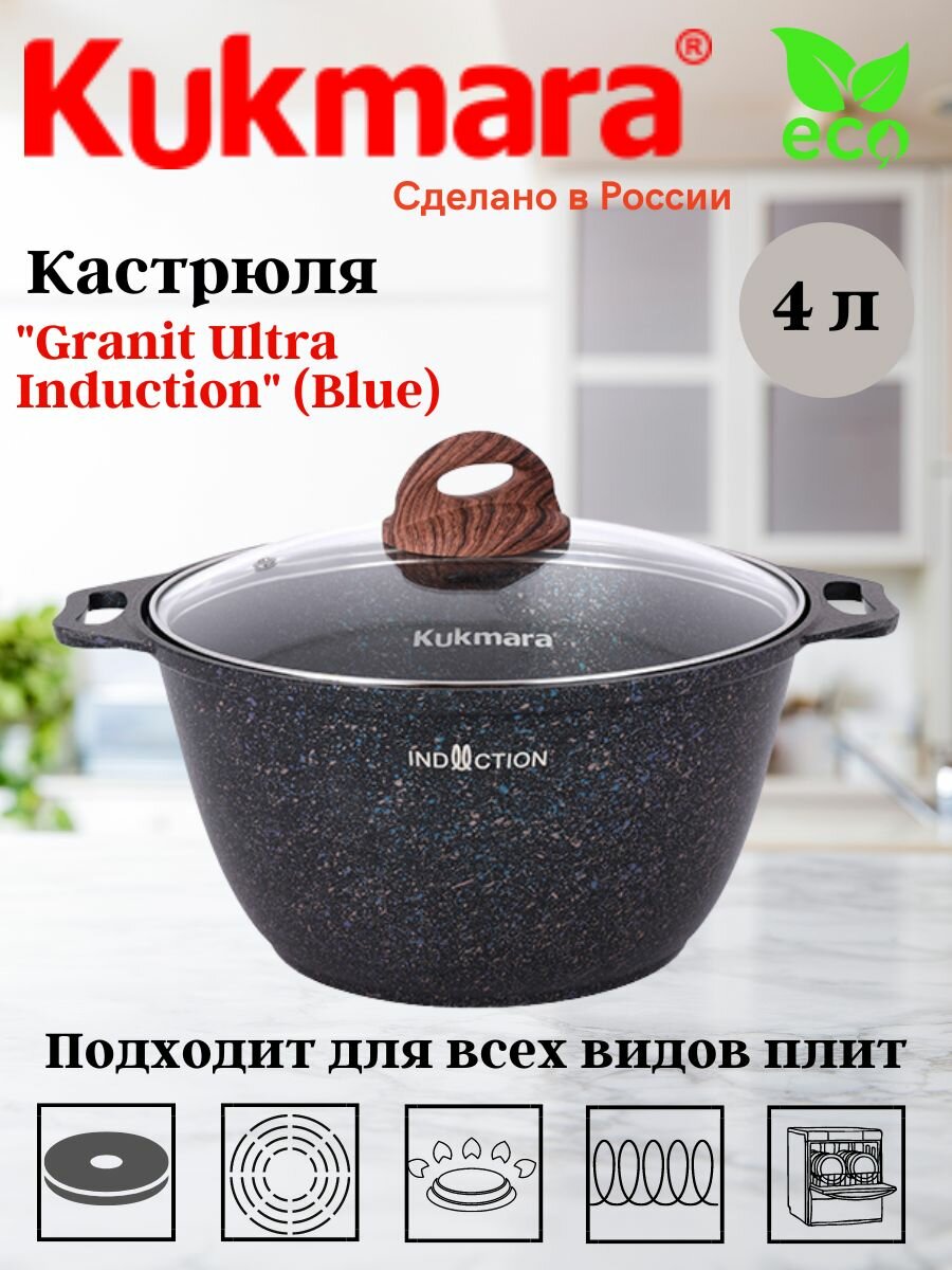 Кастрюля 4л Kukmara Кукмара стеклянная крышка Антипригарное покрытие Granit Ultra Induction цвет blue - кгги42а