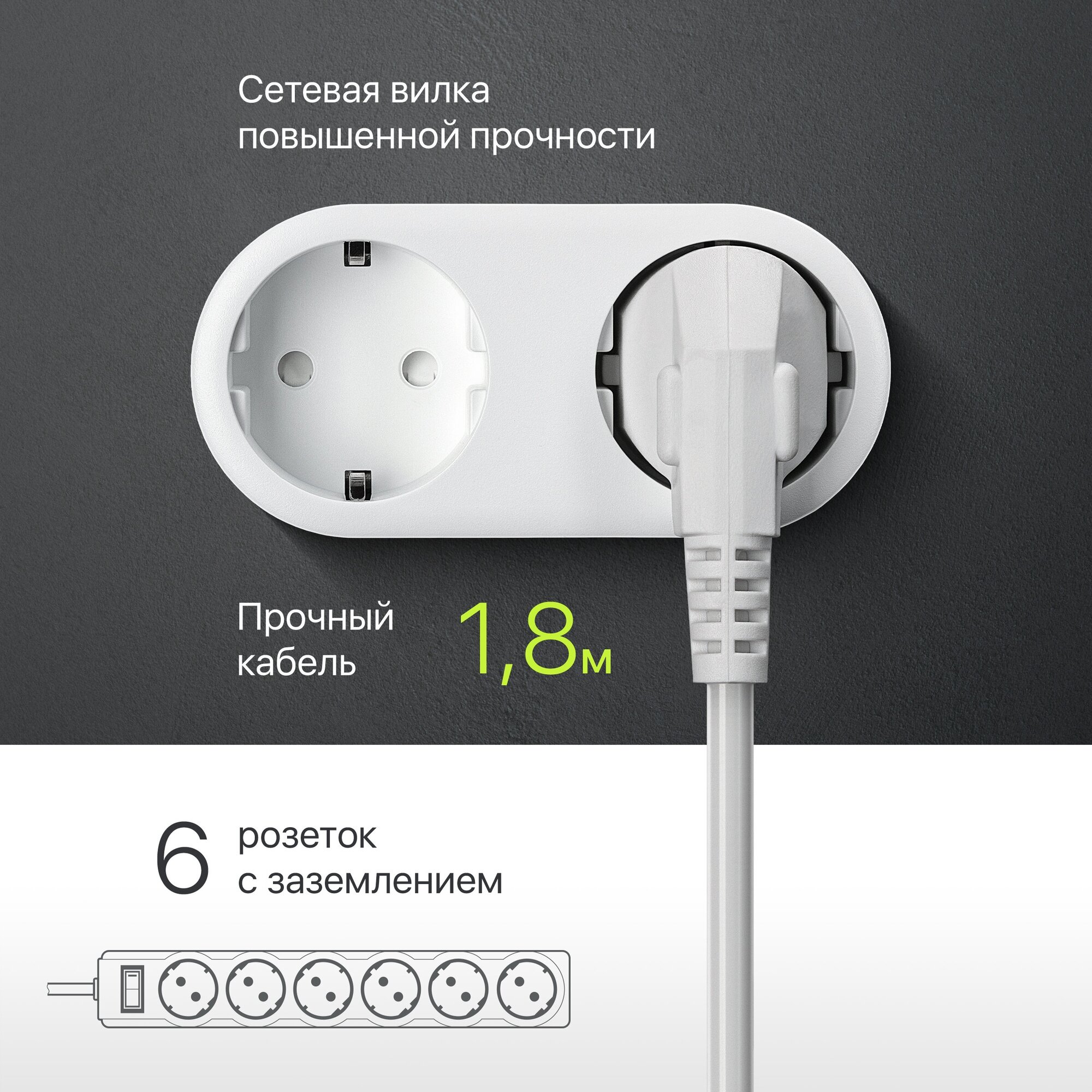 Сетевой фильтр Defender DFS 151 1,8 м, белый, 6 розеток