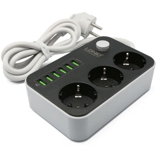 Отзывы на Сетевой фильтр LDNIO SE3631 - 3 розетки + USB зарядка 6 портов 3.4A, черно-белый - 1.6 метра