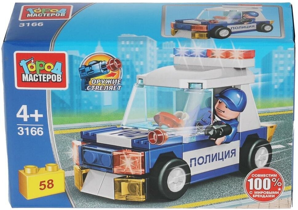 10 цен на Конструктор Полицейский на машине, 58 дет. Город Мастеров 3166-PZ