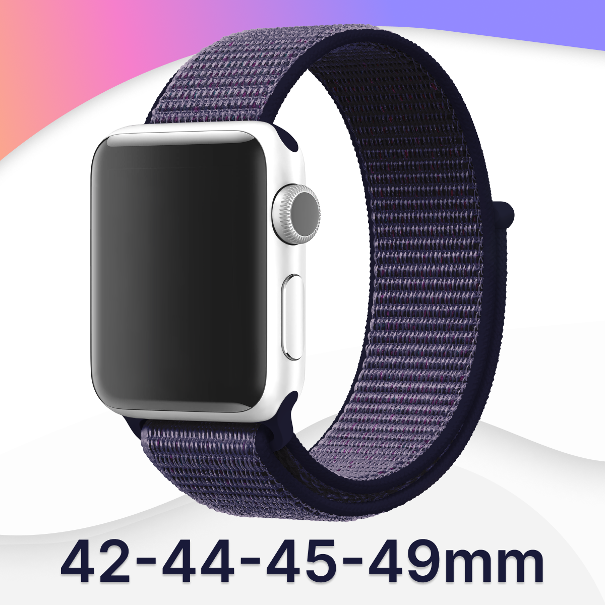 Нейлоновый ремешок для часов Apple Watch series 1-9, SE, Ultra, 42-44-45-49 mm / Браслет на липучке для Эпл Вотч 42-49 мм (Розово-фиолетовый) 339 ₽