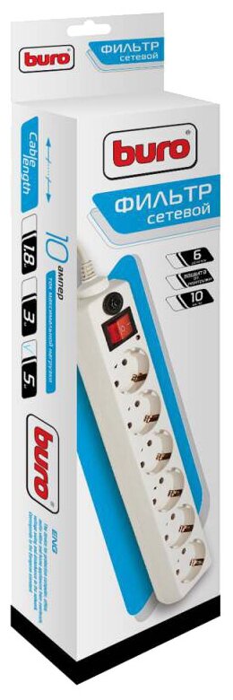 10 цен на Сетевой фильтр Buro 600SH-5-W 6 розеток, 5 метров, белый