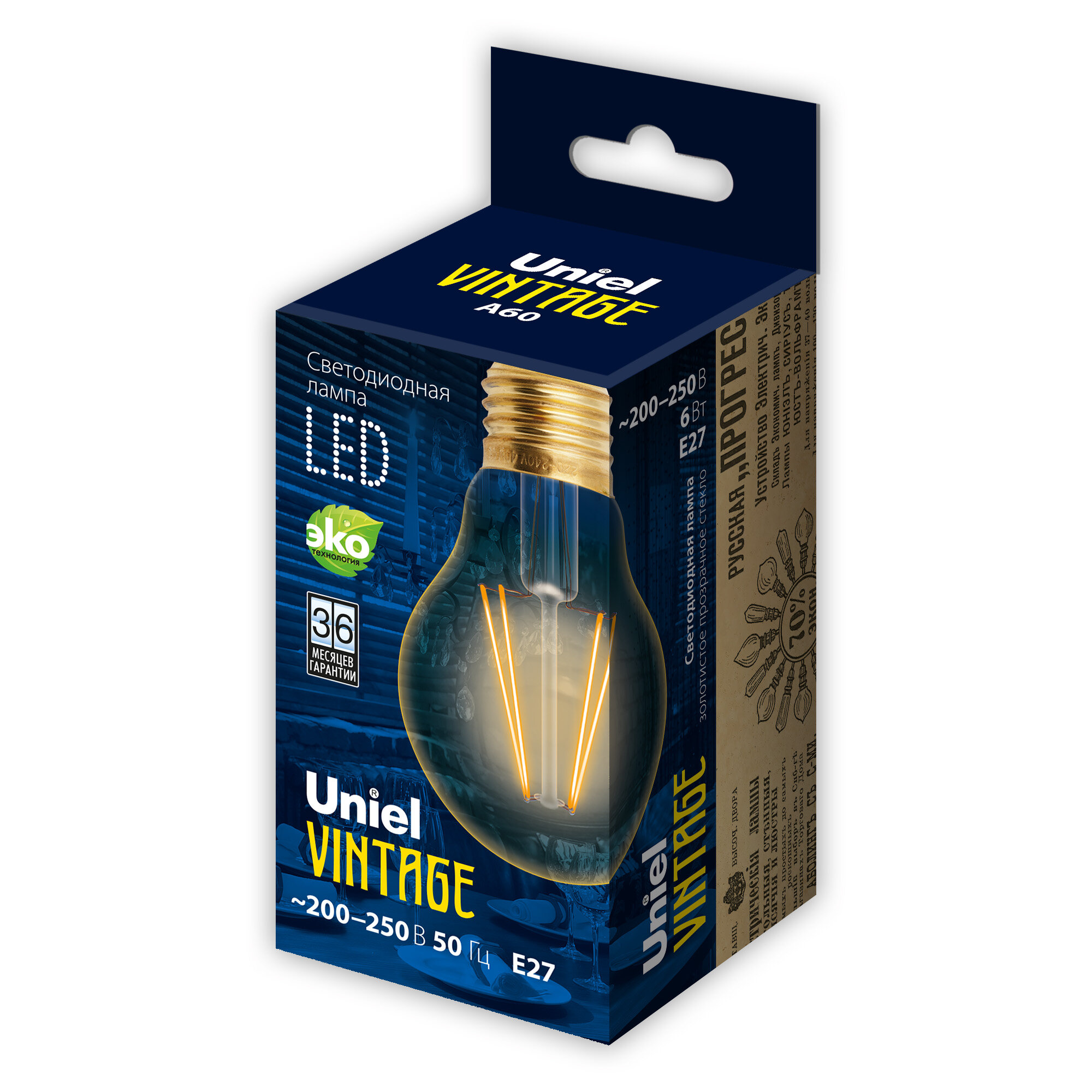 Отзывы на LED-A60-6W-GOLDEN-E27 GLV21GO Лампа светодиодная Vintage. Форма A. золотистая колба. Картон. ТМ Uniel