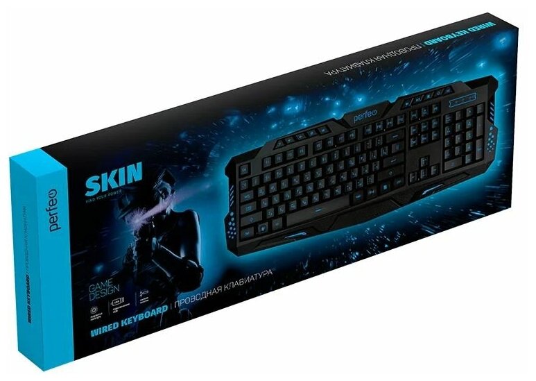 Клавиатура проводная «SKIN», Multimedia GAME DESIGN, подсветка, USB, чёрный информация: