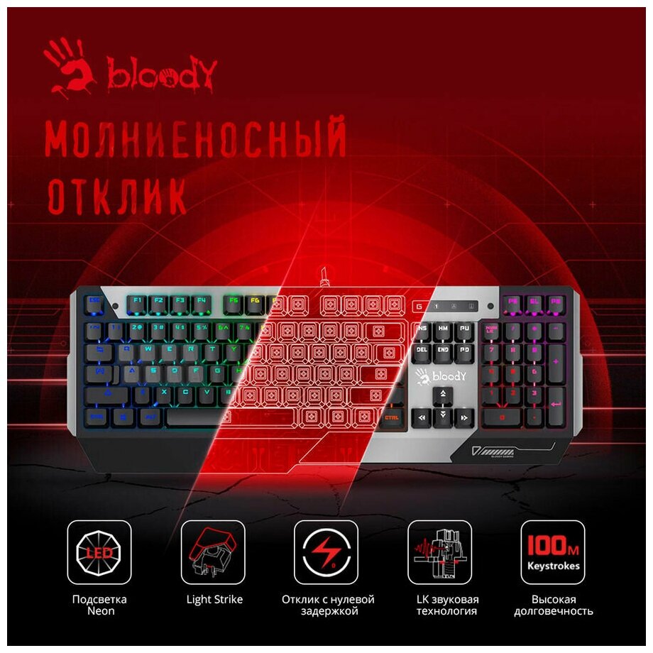 Игровая клавиатура Bloody B865N, серый/черный информация: