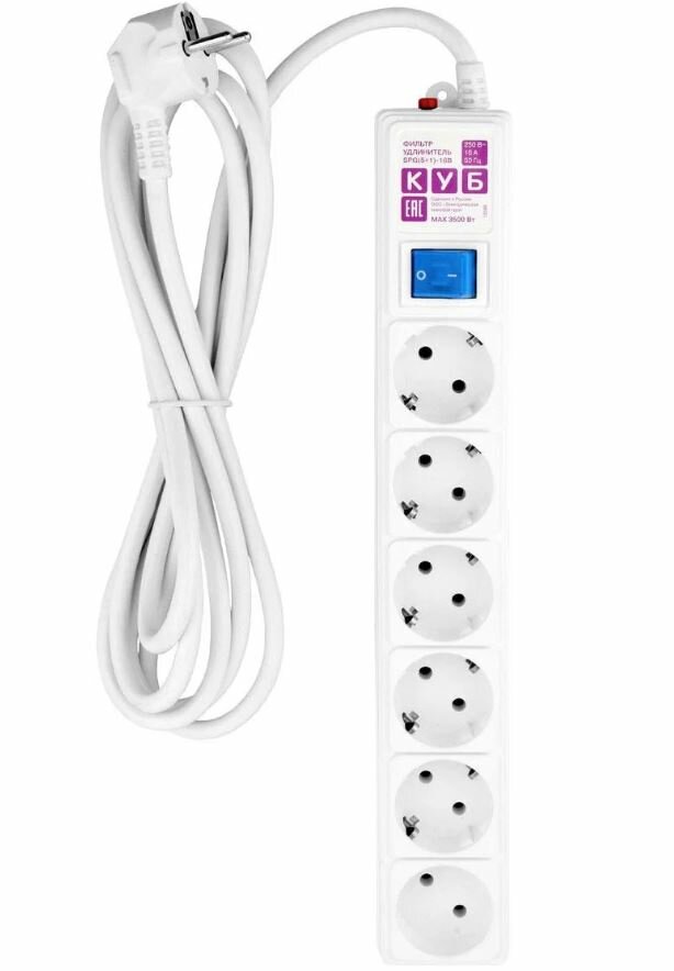 Сетевой фильтр Power Cube Ф3-16А, 6 розеток, с/з, 16А / 3500 Вт белый 3 м 373 мм 52 мм 41 мм 1 м² 6