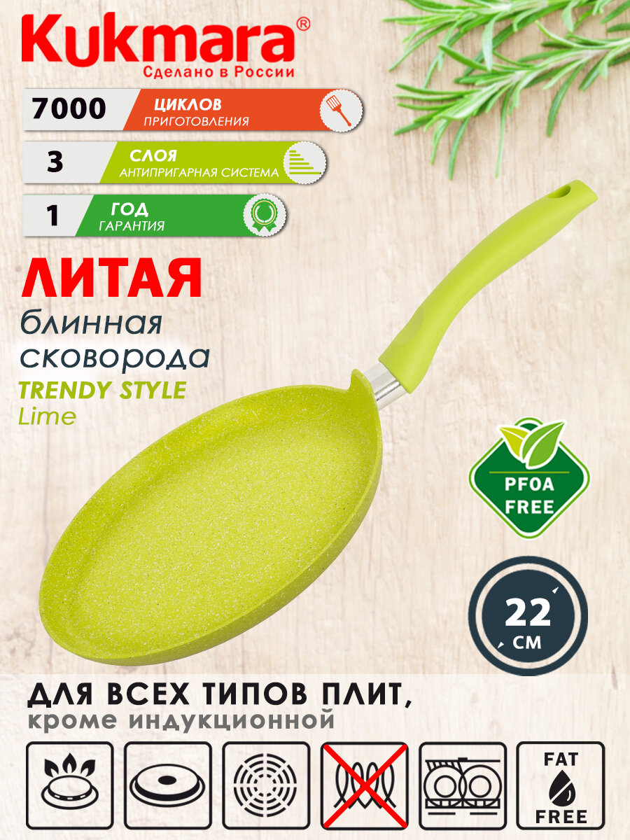 KUKMARA сб220tsl а/пр литая блинная 22см TRENDY STYLE LIME