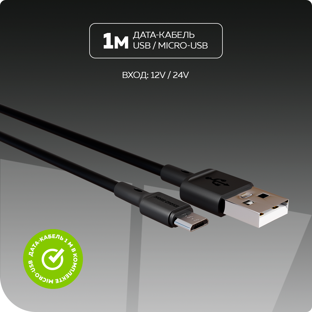 Автомобильное зарядное устройство 2USB 2.4A с кабелем micro USB More choice AC23m Black 1 099 ₽