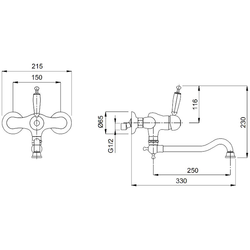 Смеситель для кухни моноком. настенный, излив 25 см, ручка белая/золото Migliore CUCINA OXFORD ML.CUC-6340.BI.DO 29 400 ₽