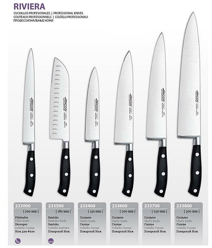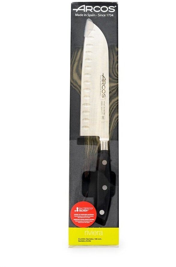 Отзывы на Нож поварской сантоку из кованой высокоуглеродистой нержавеющей стали, 18 см, пластиковая рукоять, черный, серия Riviera, Arcos, 2335