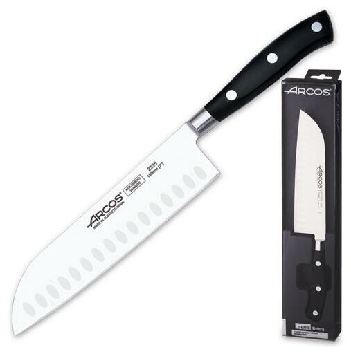 10 цен на Нож поварской сантоку из кованой высокоуглеродистой нержавеющей стали, 18 см, пластиковая рукоять, черный, серия Riviera, Arcos, 2335