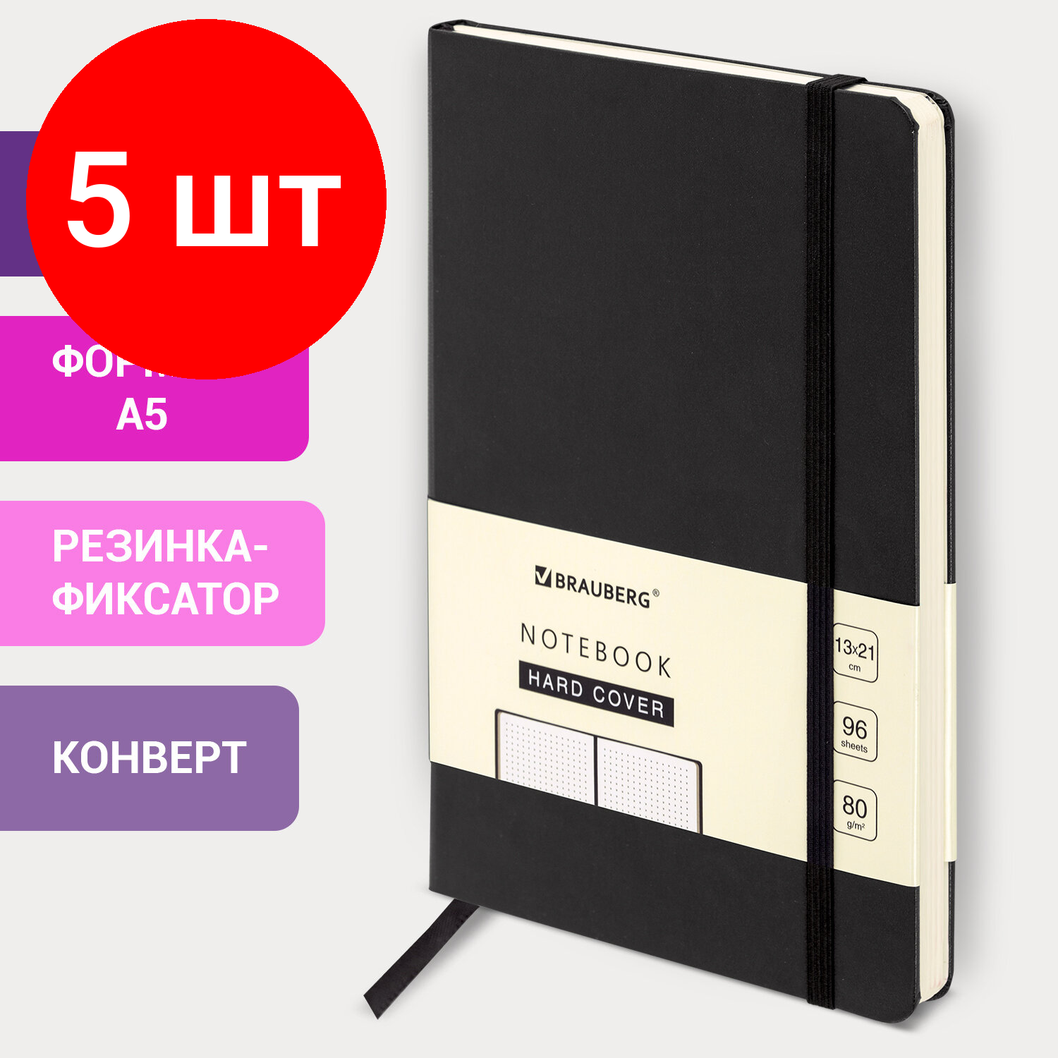 Отзывы на Комплект 5 шт, Блокнот А5 (130х210 мм), BRAUBERG ULTRA, балакрон, 80 г/м2, 96 л., в точку, черный, 113040