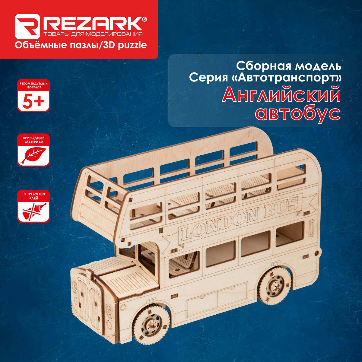Сборная модель (фанера) "REZARK" BIR-010 Пазл 3D 70 элементов Английский автобус информация: