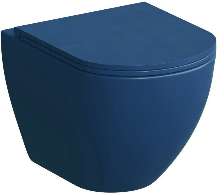 Унитаз подвесной безободковый с тонкой крышкой Grossman GR-4455BLMS синий матовый (485*360*375)