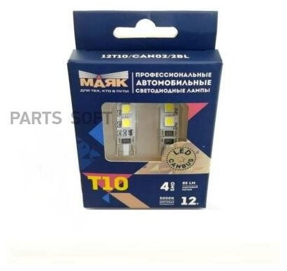 Лампа Светодиодная W5w W2.1x9.5d Super White 12v Цена За Комплект Маяк арт. 12T10CAN022BL