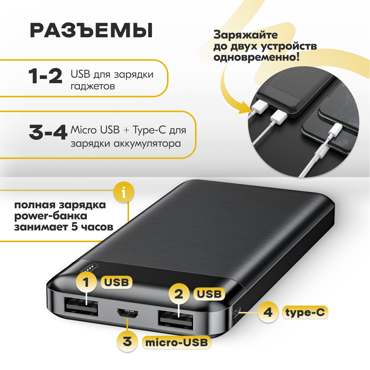 Пауэрбанк для телефона, повербанк 10000, power bank 10000 для зарядки андроида и айфона с разъёмом Type-C, портативный аккумулятор ( черный ) 1 045 ₽