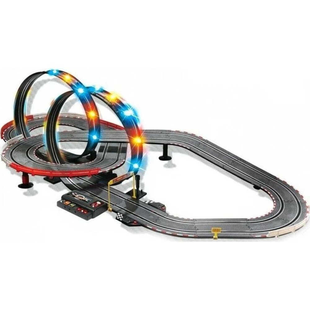 | Комплектация | - детали для сборки автотрека; - 2 машинки; - 2 пульта управления; - сетевой адаптер. |